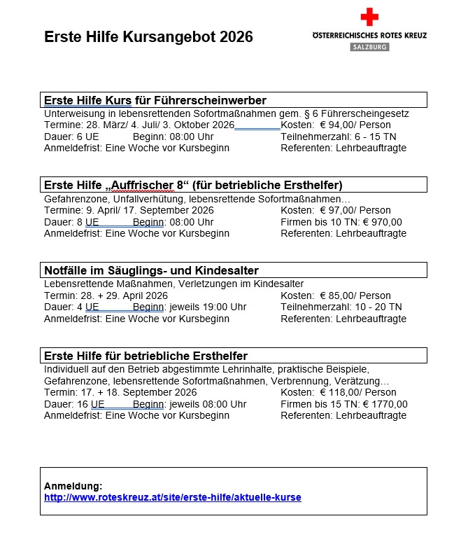 - Erste Hilfe Kursangebot 2026