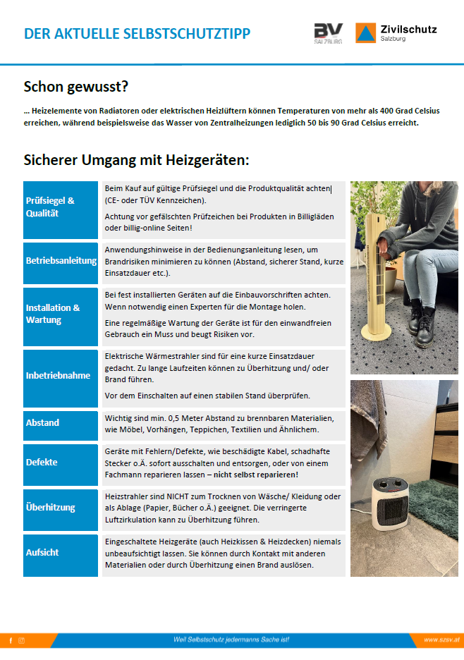 - Selbstschutztipp Salzburger Zivilschutzverband - Sicherer Umgang mit Heizgeräten